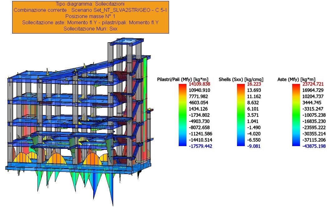Il corpo di fabbrica, stante le diverse quote su cui sono posate le fondazioni (il sito di realizzazione è collocato su di un pendio naturale), è provvisto di un giunto statico; pertanto, l’edificio è strutturalmente costituito da n. 2 telai indipendenti. La struttura dei due telai è composta da pilastri e travi di c.a., a cui si aggiungono i solai latero-cementizi ed i setti dei corpi ascensori. Al piano terra dei due corpi di fabbrica, sono collocati dei tetti giardino; pertanto, i solai che sostengono le suddette porzioni sono adeguatamente dimensionati a sostenere i carichi gravanti dal soprastante riempimento di terreno.