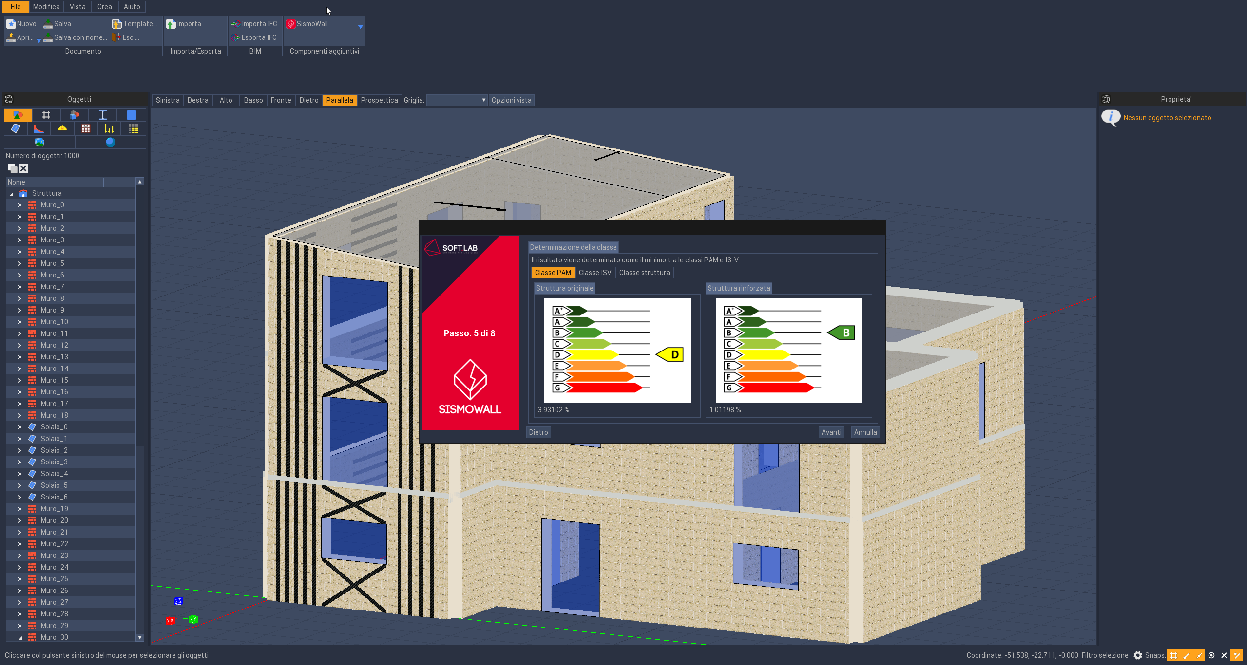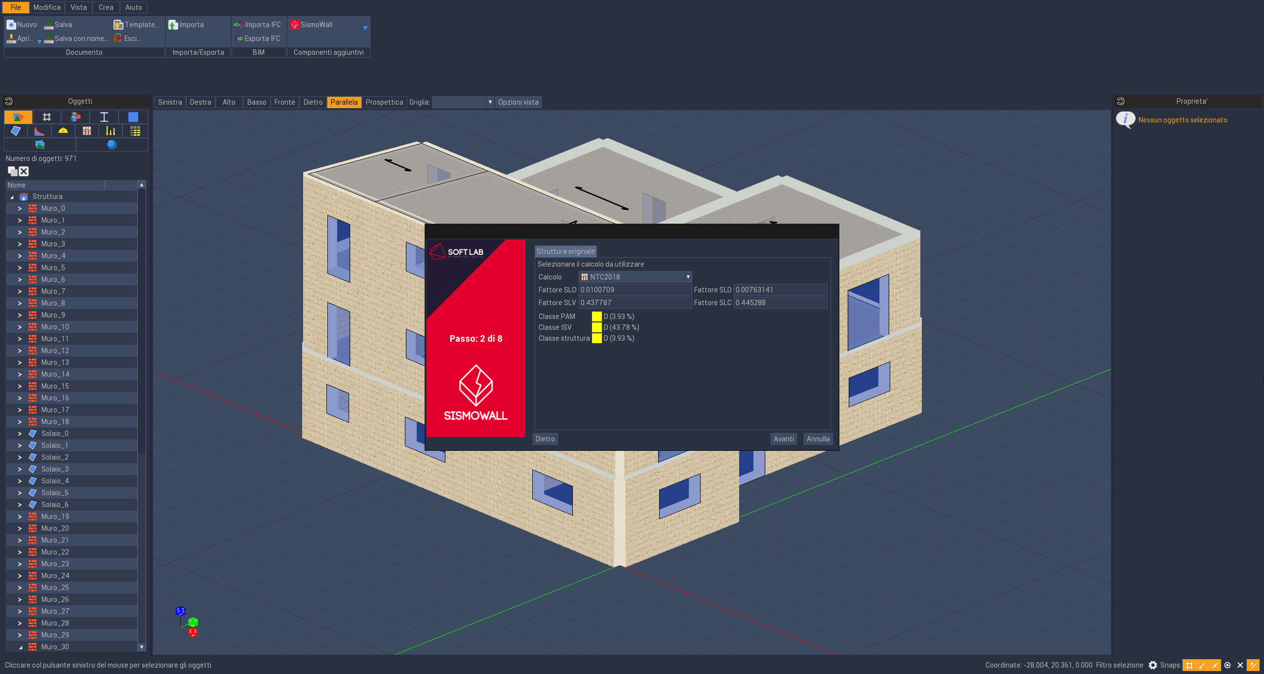 SismoWall è il modulo di IperWall BIM per la classificazione sismica degli edifici secondo l’agevolazione Sisma Bonus, introdotta dal DM 65/2017, che prevede la possibilità di fruire di una detrazione fiscale sugli interventi di adeguamento sismico delle case, degli immobili delle attività produttive e dei condomini. Il modulo opera direttamente nell’ambiente di IperWall BIM consentendo, attraverso due elaborazioni, rispettivamente per la struttura allo stato di fatto e per la stessa, ma dopo l’intervento di riduzione del rischio sismico, la determinazione del passaggio da una a più classi sismiche inferiori, attraverso il metodo convenzionale e il metodo semplificato.